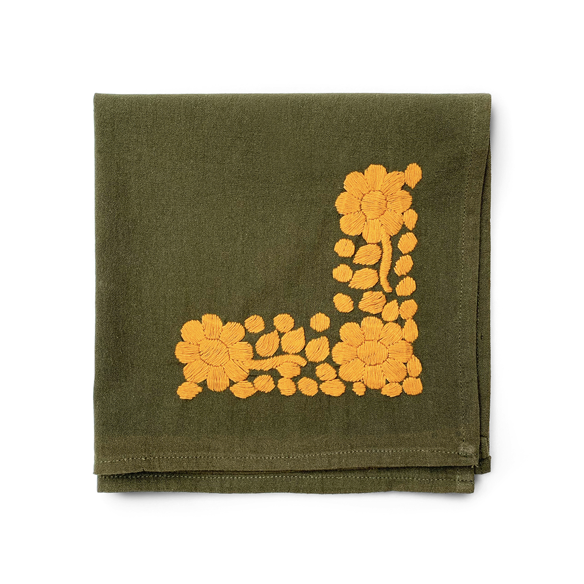 Folk Embroidered Napkin - Marigold & Olive